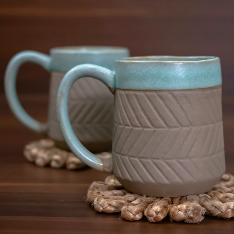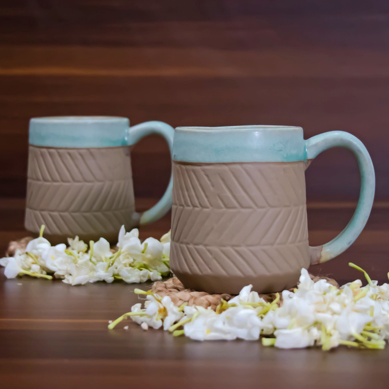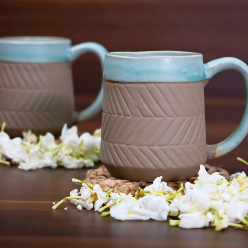 Make your dining and serving experiences joyful with this beautiful Mud outside and Teal color inside. Crafted from ceramic, it comes in a unique hue that is enhanced by an endearing rustic yet modern look. This Coffee Mug Set is a piece of functional art and an apt gift in this festive season as they will add freshness in your loved one’s life every day. This set serves as a perfect companion for servings of tea, coffee, milk etc.